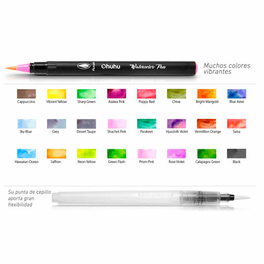24 MARCADORES DE PINCEL ACUARELABLES "OHUHU"